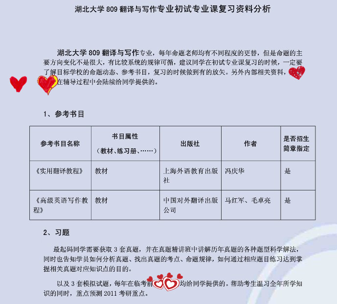 针对想报考湖北大学外国语学院外国语言文学专业的考生,考试科目为《809翻译与写作》,因为复习英语知识点多…