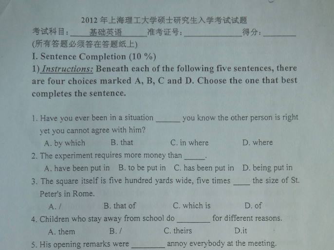 若你是参加上海理工大学文学院英语语言文学、外国语言学及应用语言学专业的研究生入学考试,专业课考试科目为《…