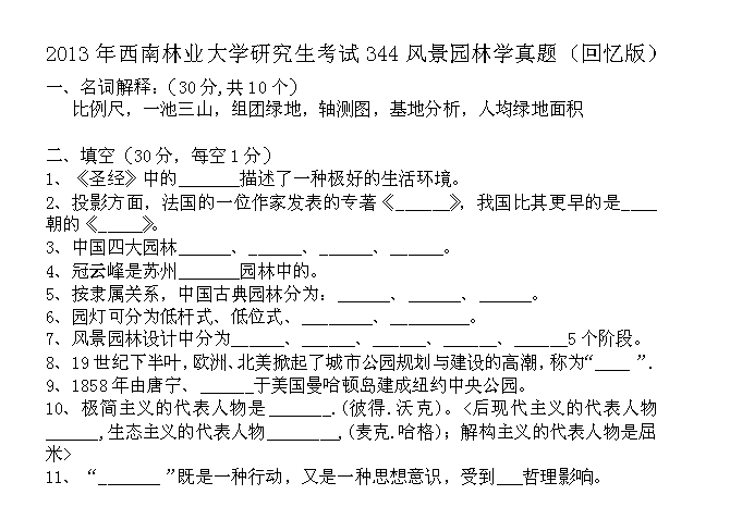 第二阶段:串讲园林基础知识,紧紧把握西南林业大学园林考研的重点;