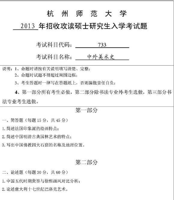若你是参加杭州师范大学美术学院美术学硕士研究生入学考试,初试专业课科目为《732中外美术史》的考生可以来…