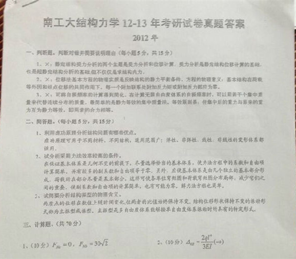参加南京工业大学土木工程学院硕士研究生入学考试,初试专业课科目为《833结构力学》,指定参考教材是《结构…