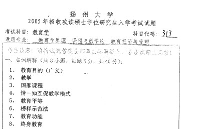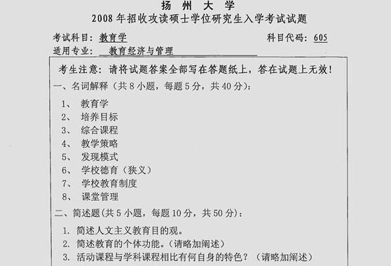 凡是参加扬州大学教育经济与管理专业研究生入学考试,初试专业课选择《614教育学》的考生,都可以报名参加本…