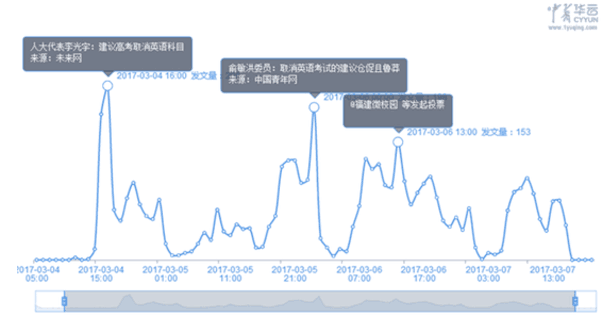 李光宇建议高考取消英语,俞敏洪急了 建议高考取消英语科目的是全国人大代表、中国宇华教育集团董事局主席李光宇。他认为,目前中小学的孩子们花在英语学习中的时间太多了:“如果按照每天8个小时的学习时间来计算,在一个孩子最美好的10年时光里,竟然将近五分之一(18.13%)的时间都花在了英语学习上。”因此,他还建议把中小学生的英语必修课改为选修课。 对此,全国政协委员、新东方教育集团董事长俞敏洪表示不认同:“我觉得取消英语考试这个建议有点仓促,甚至比较鲁莽。”他认为,学习英语已经不再纯粹由国家决定了,这是中国走向世界的必然需求。 虽然俞敏洪并不赞成取消英语考试,但他提出降低英语在高考中的比重,或者降低英语在高考中的难度。“如果有的家庭希望孩子未来出国深造,自然会给孩子增加英语学习的量,但英语对于普通老百姓,尤其是边远地区的孩子来说,学习起来依然有一定的困难。” 网民观点对冲激烈,该不该取消各执一词 会场外,李光宇和俞敏洪的观点引发众多网友围观讨论。截至3月7日16时,中青舆情监测室共监测到此各平台有关信息11513条(不含新闻跟帖),舆情热 度波动频繁。李光宇和俞敏洪的言论经媒体报道后,均成引爆文章。随着微博大V的介入,该话题在6日和7日仍然热度不减。 中青舆情分析师发现,此话题下的网民讨论量已超过10万,观点对冲激烈。在微博平台,多个大V发起的网络调查均显示,反对高考取消英语的网友占多数。而 网易新闻发起的新闻投票却显示,63.5%的网友支持取消英语考试,应改为选修。如: 反对者多认为英语已是必备技能。同时,一部分网友赞成降低英语在高考中的比重,慎重评估是否将英语必修改为选修。 如: @凯特-先知:高考取消英语你让以后的学生拿什么看学术期刊上的英语文献? @放水大魔王:取消之后,有钱人能学英语,穷孩子学英语的权利都没有了。 @按剑南山:英语一旦不入高考,以高考为指挥棒的基础教育阶段就不会再认真教英语了。但是在高等教育阶段,翻文献、发论文哪一样不要英语?将来做涉外事务,和欧美诸国打交道,英语也是必需品。义务教育不教了,需求又客观存在,当然就会有外部资本填补空当。 而支持取消者则表示,英语教育在中国中小学教育中比重过高,学生负担重,且基础英语教学已脱离实际,甚至有极端的声音主张“英语无用论”。 如: @心歸来兮:因为英语必修,有多少喜欢国学而英语不好的学生止步于大学校门之外,又有多少不喜欢英语的优秀人才被埋没? @miniappler:英语确实毁了不少人,我身边有很多人其他功课都不错,前几名,但一算上英语就倒数了,长此以往对自己的成绩失去了信心。英语对于很多中国人来说没有深入学习的必要,可以这样来:简单口语必学,其他的留给喜欢他的人学吧! @安萌萌:双手赞成,英语是目前所有科目中最脱离教育实际的,别跟我说什么学术需要,现在网上翻译软件一大把。 媒体和教育工作者:优化英语教育和评价体系更实际 高考取消英语到底利大还是弊大?媒体和教育工作者也加入的讨论。其中,新京报发表的《高考取消英语,损失最大的还是穷人家的孩子》和中国青年网发表的《高 考取消英语是短视的“有限理性”》评论文章影响力相对较高。文章认为,全球化背景下,英语学习已是刚需,不可能弱化。如果取消英语考试,自费学英语的成本 将更高。 新京报发表评论的文章指出,若果真取消了英语,可以预见,学校里教得越少,学生、家长寻求校外“进补”的需求就越多,愿意支付的代价也越大。对于中国社会、未来,都不是好事,对普通家庭更是灾难(越有钱就越有条件校外“进补”,贫困家庭孩子可能学不起)。 如此,在放弃英语不可行,为考试而学为考试而教成顽疾的情况下,有分析指出,不如多想想如何优化英语教育,让评价体系更合理。 钱江晚报评论员认为,只有把国内英语教育的学习机制、考试方式及其作为语言本身的社会实际功能加以区分,才能更加清楚地看到,学习英语的时间长、压力大以 及英语考试机制的不合理,并不是弱化英语学习甚或高考取消英语考试的理由。主动放弃英语学习,等于关上与世界交流的一扇窗户,至于该怎么学习、怎么考试, 以及合理分配英语成绩在招生考试中的权重,这都可以另说。 武汉工程大学教师张永红表示,支持取消高考英语的初衷很多是因为英语学习占用了大量时间、应该给学生减负。其实就目前而言,学校取消了英语,学生们仍然会 在其他科目上拼命,学业负担并未受到实质影响。弱化英语学习和增强中国传统文化的学习之间并没有必要联系,适度在大学阶段降低英语的要求,针对不同专业、 不同层次学习进行分类教学,鼓励和加强专业知识的学习,也许是一条循序渐进的改革方向。